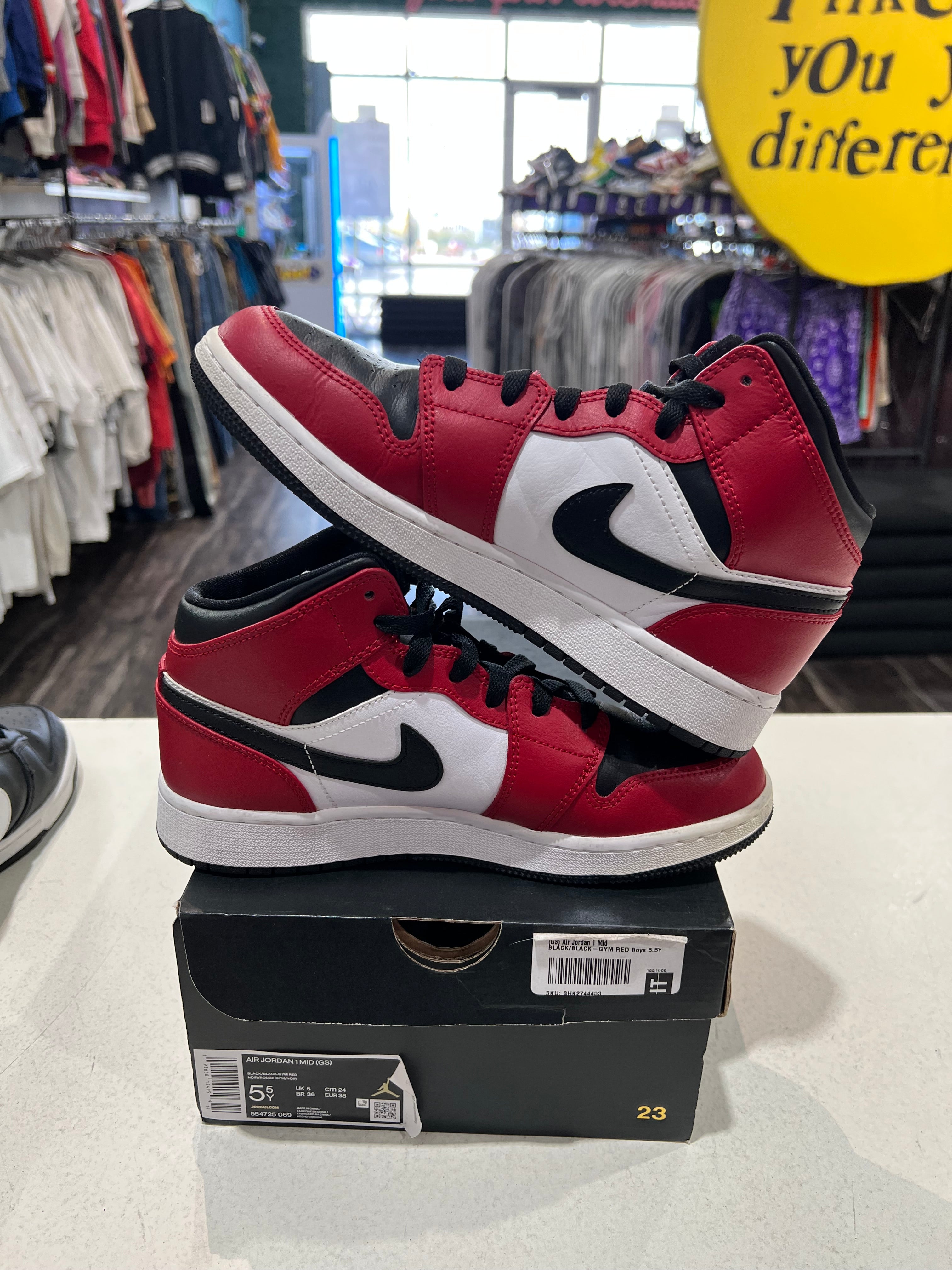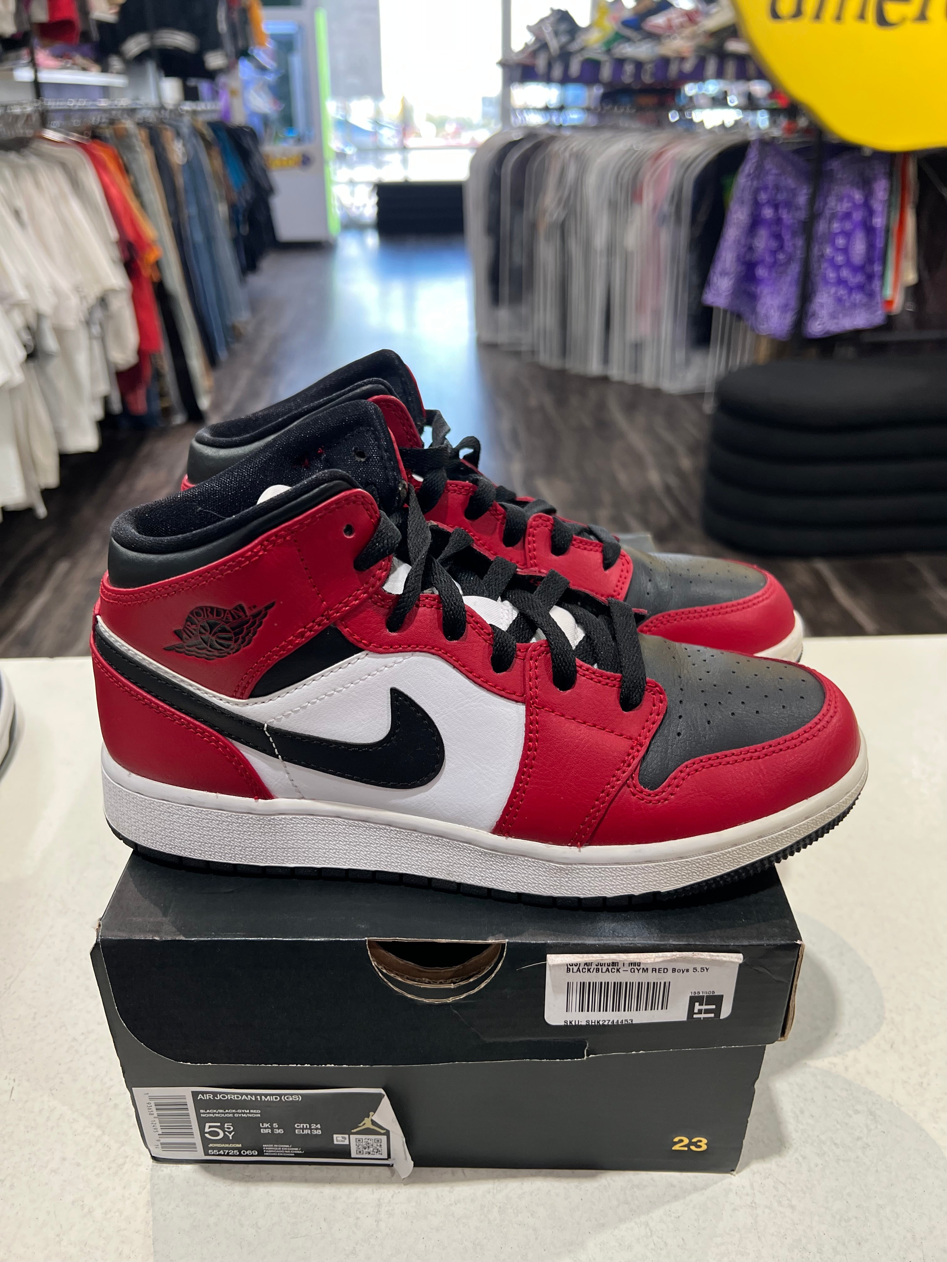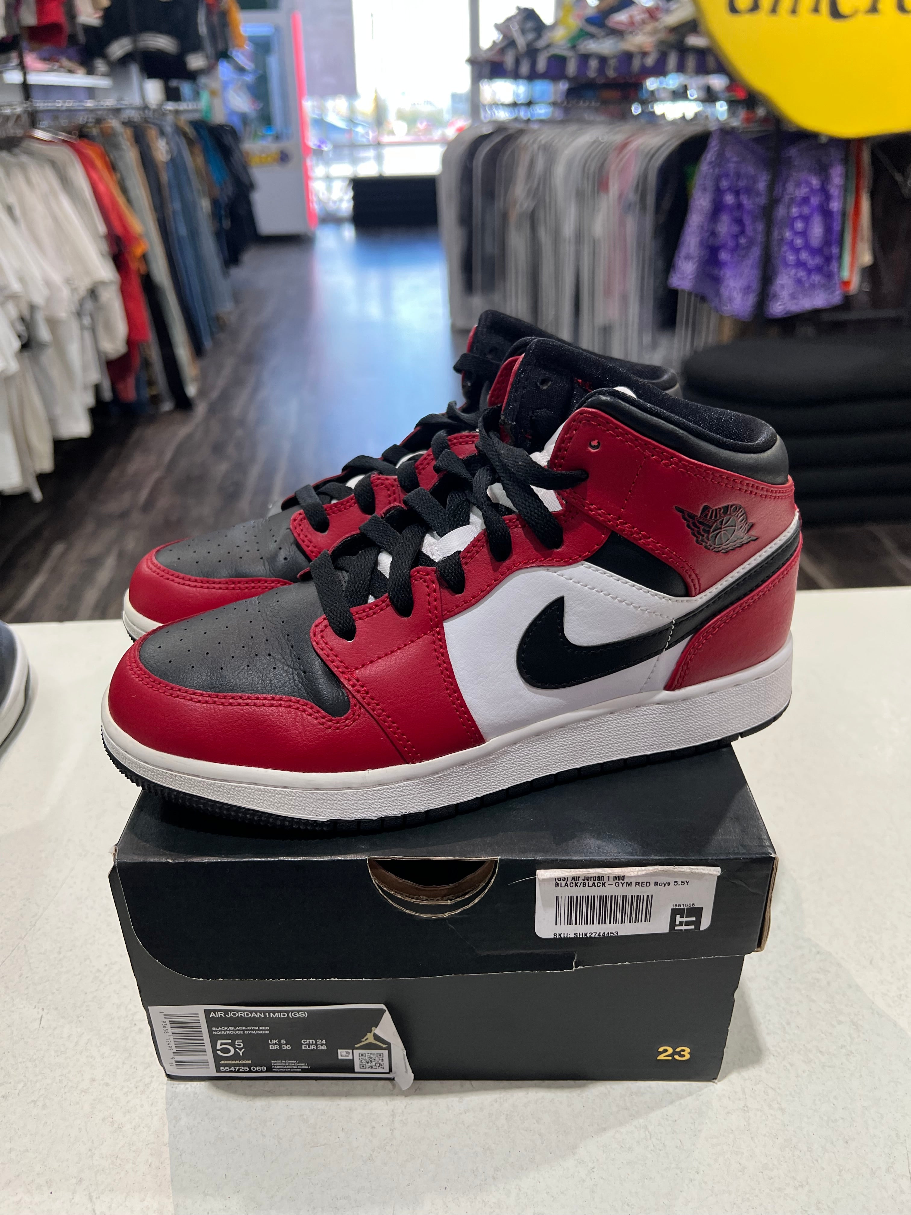 Jordan 1 Mid GS Chicago Black Toe PRE-OWNED