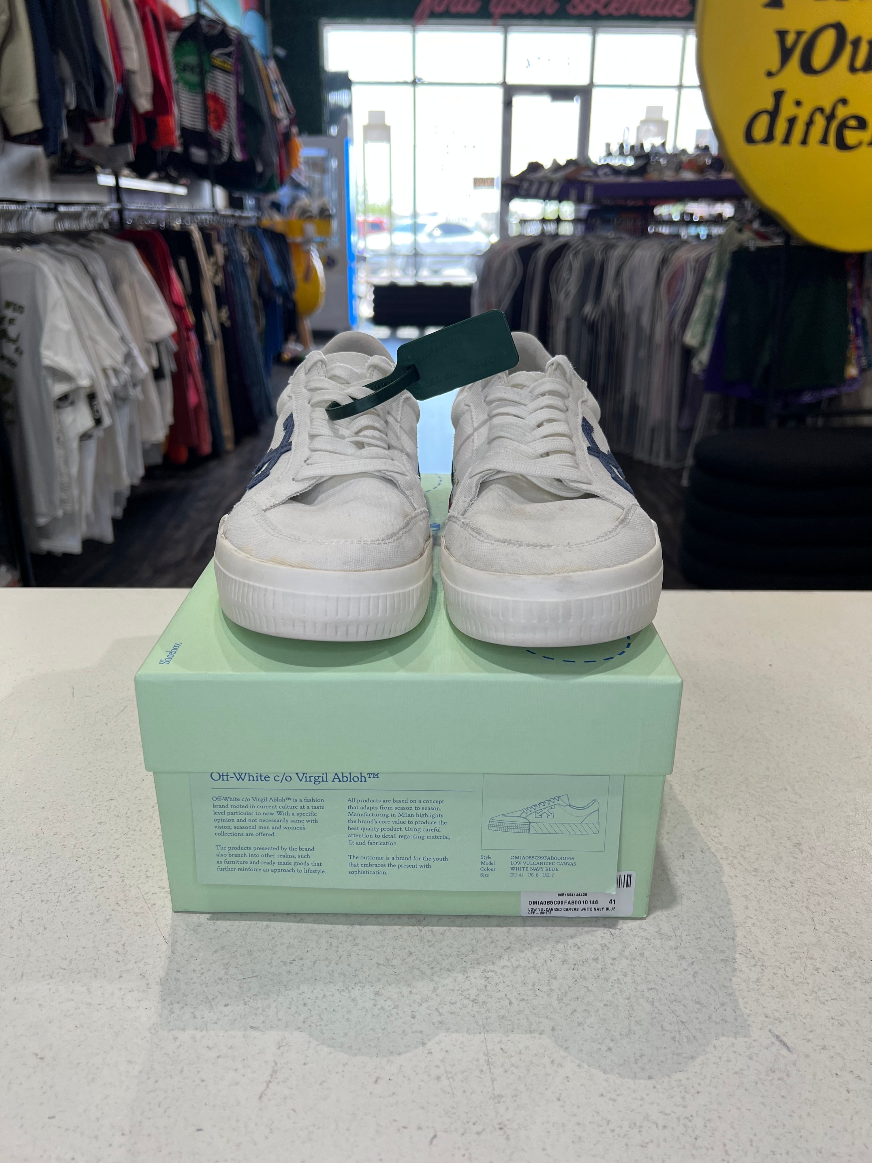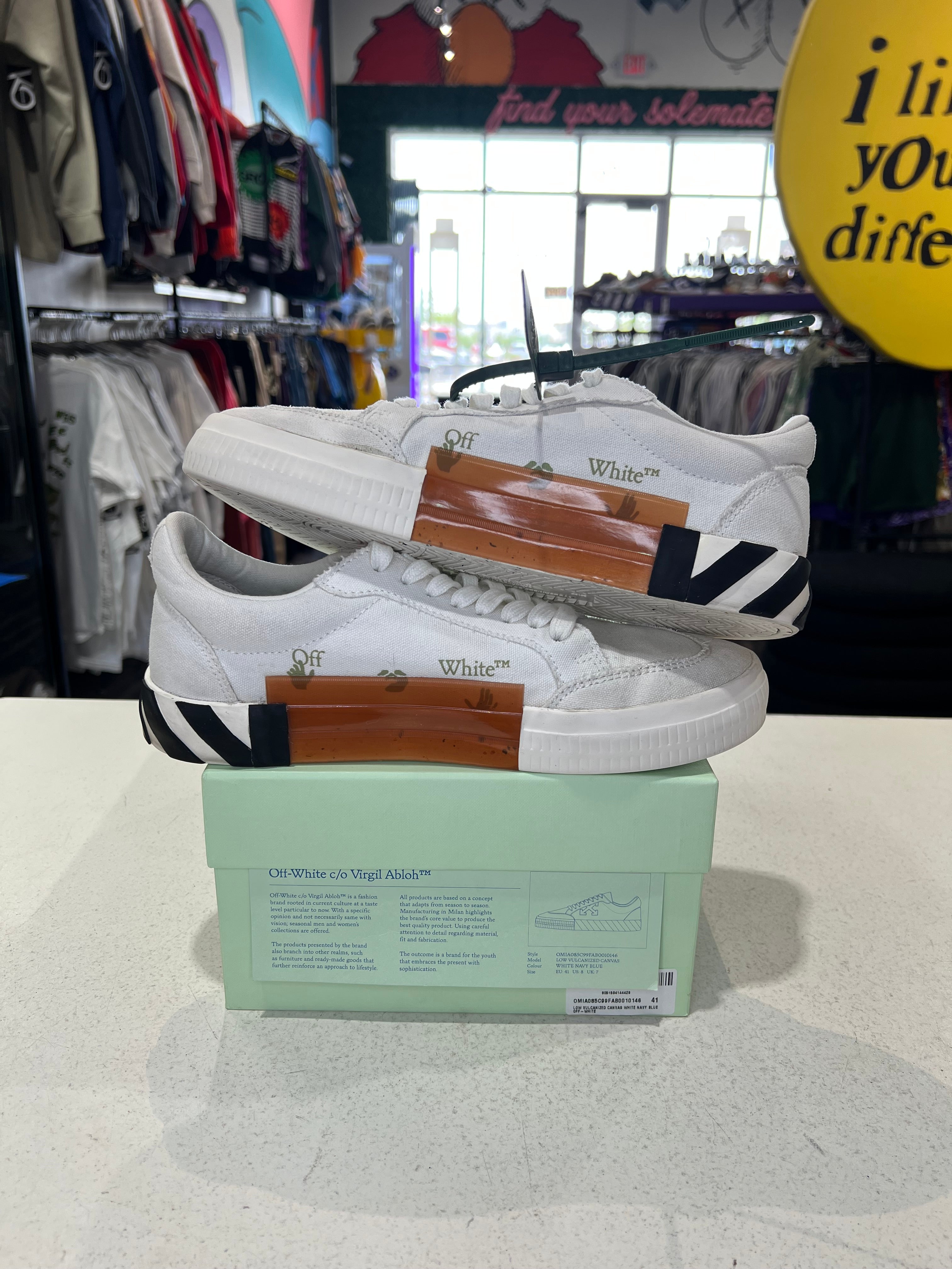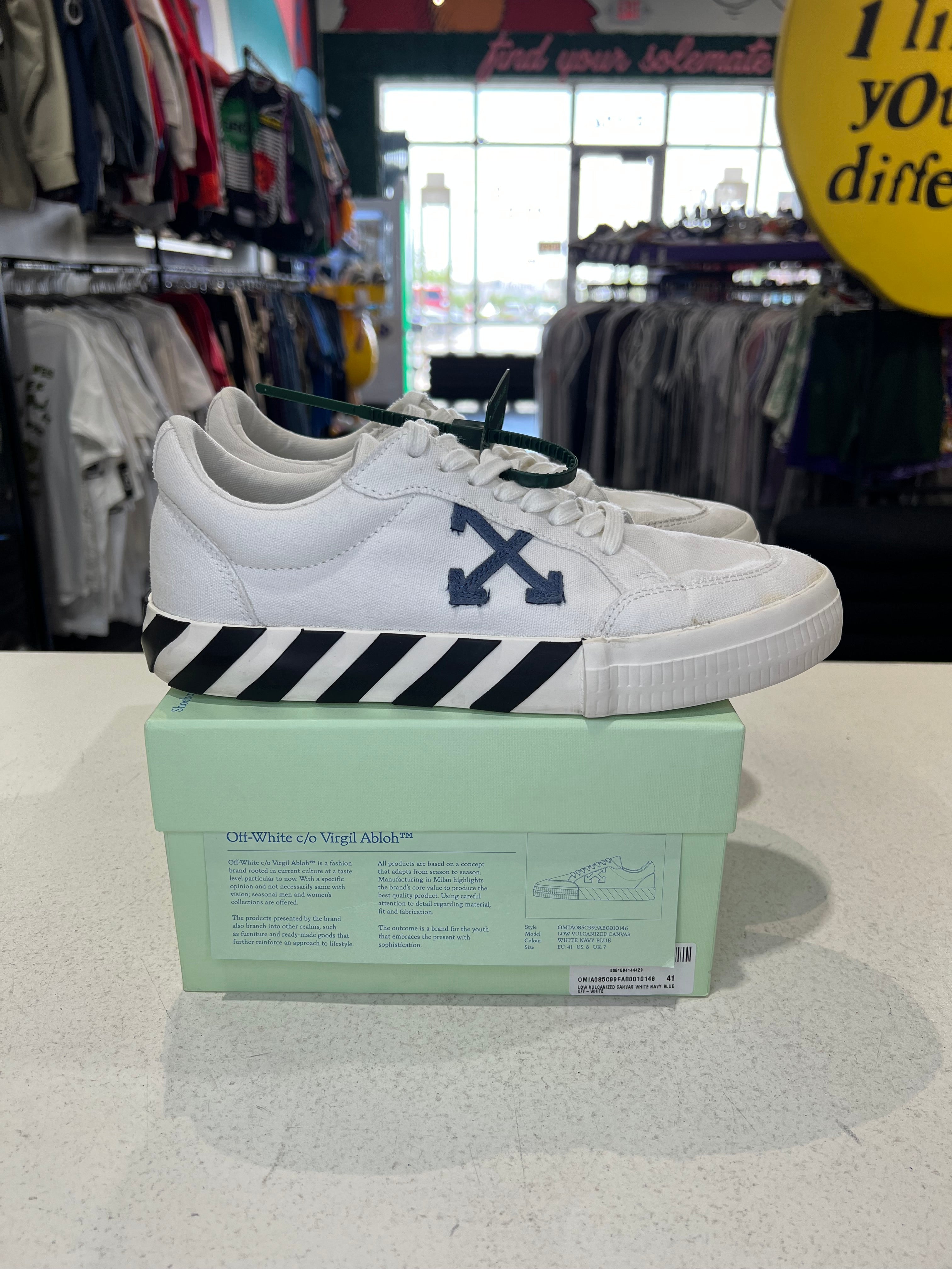 Off White Vulc Sneaker White Navy PRE-OWNED