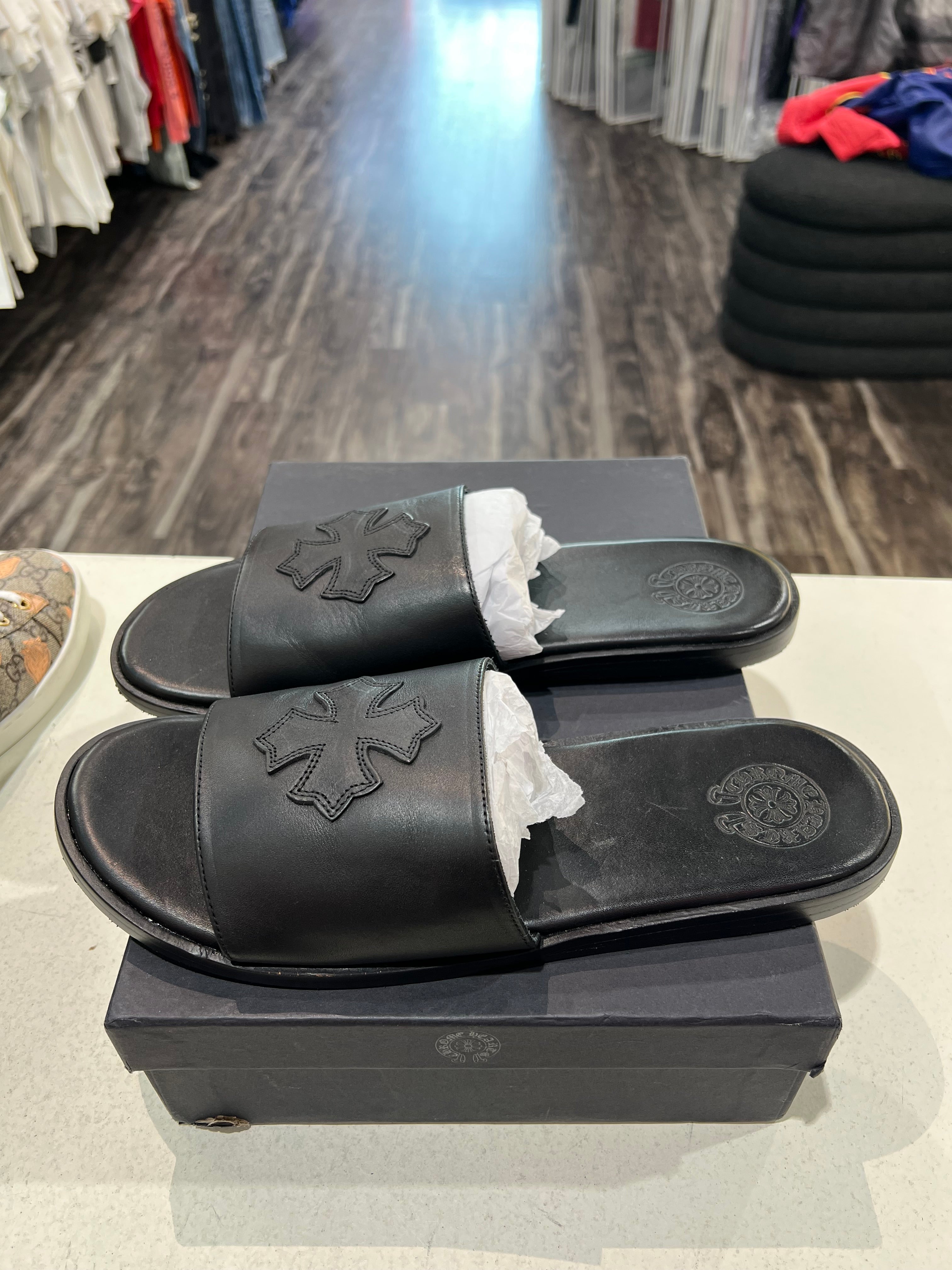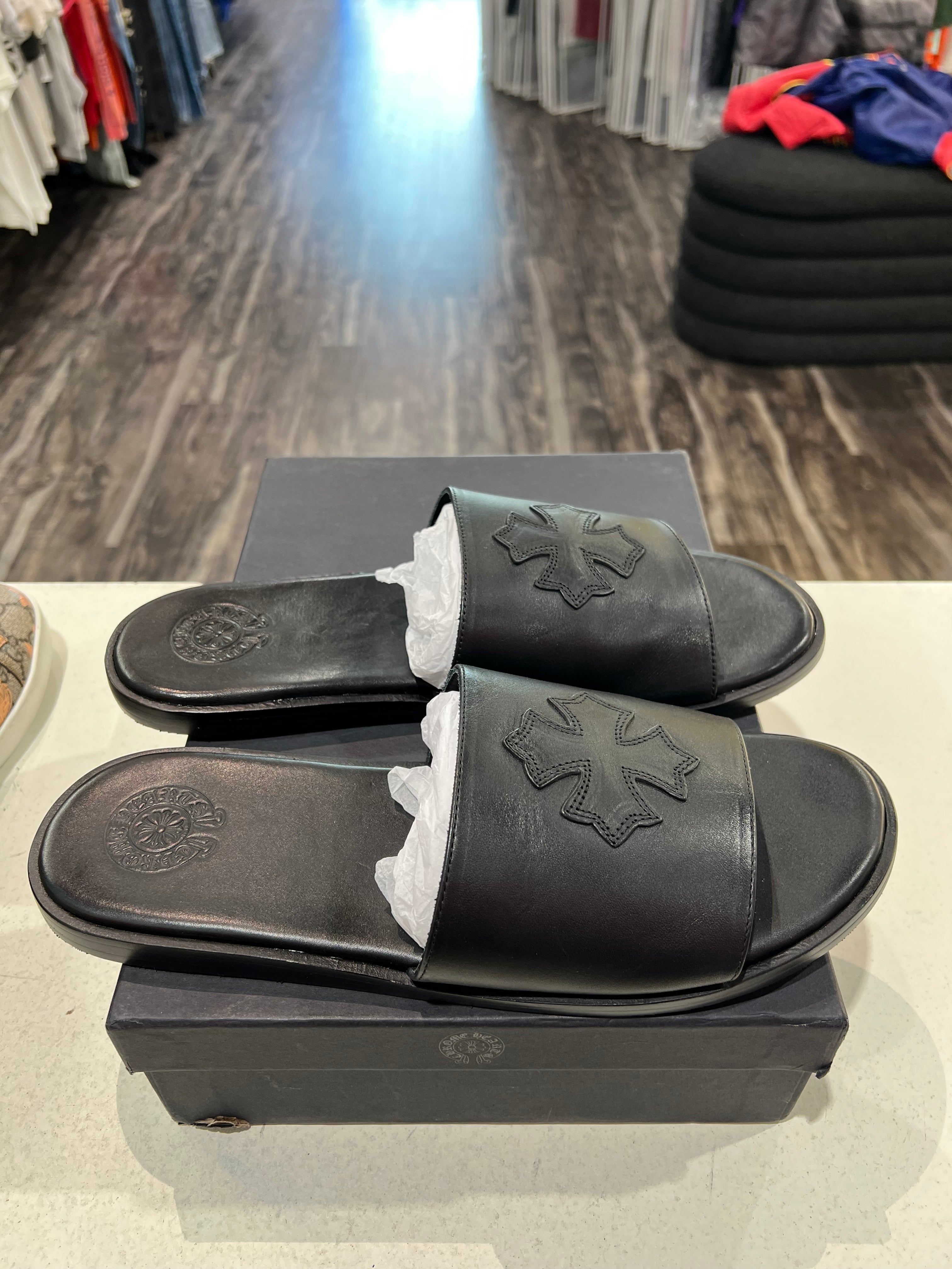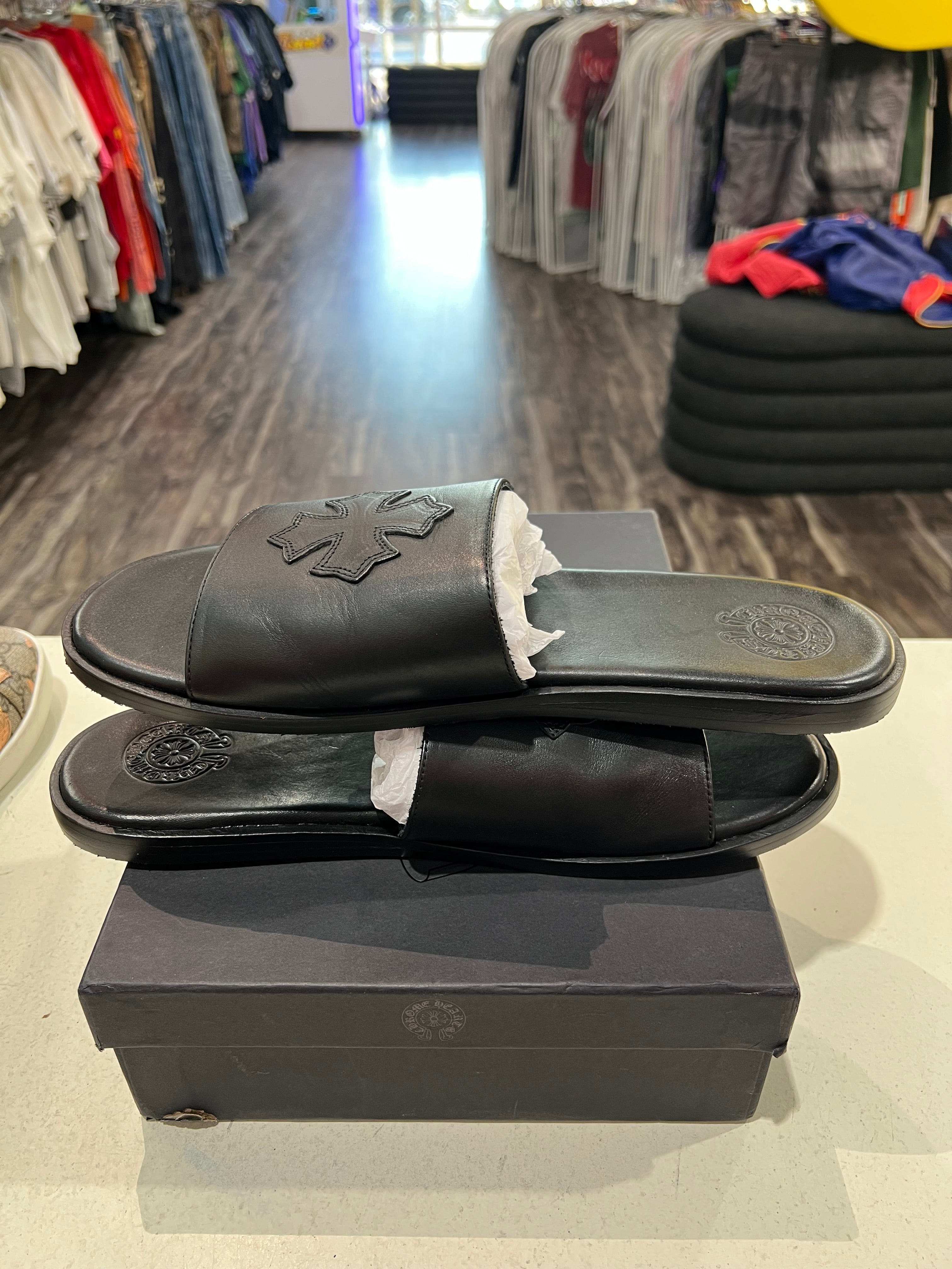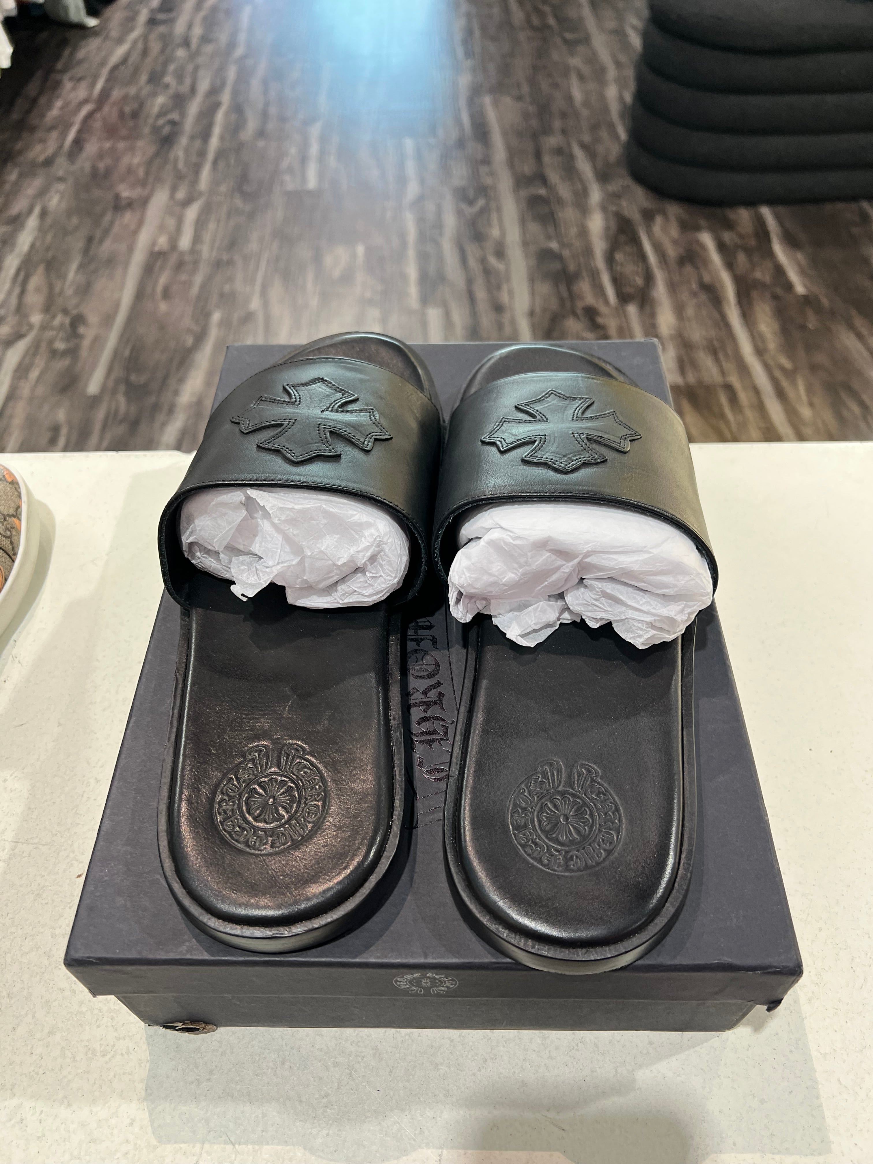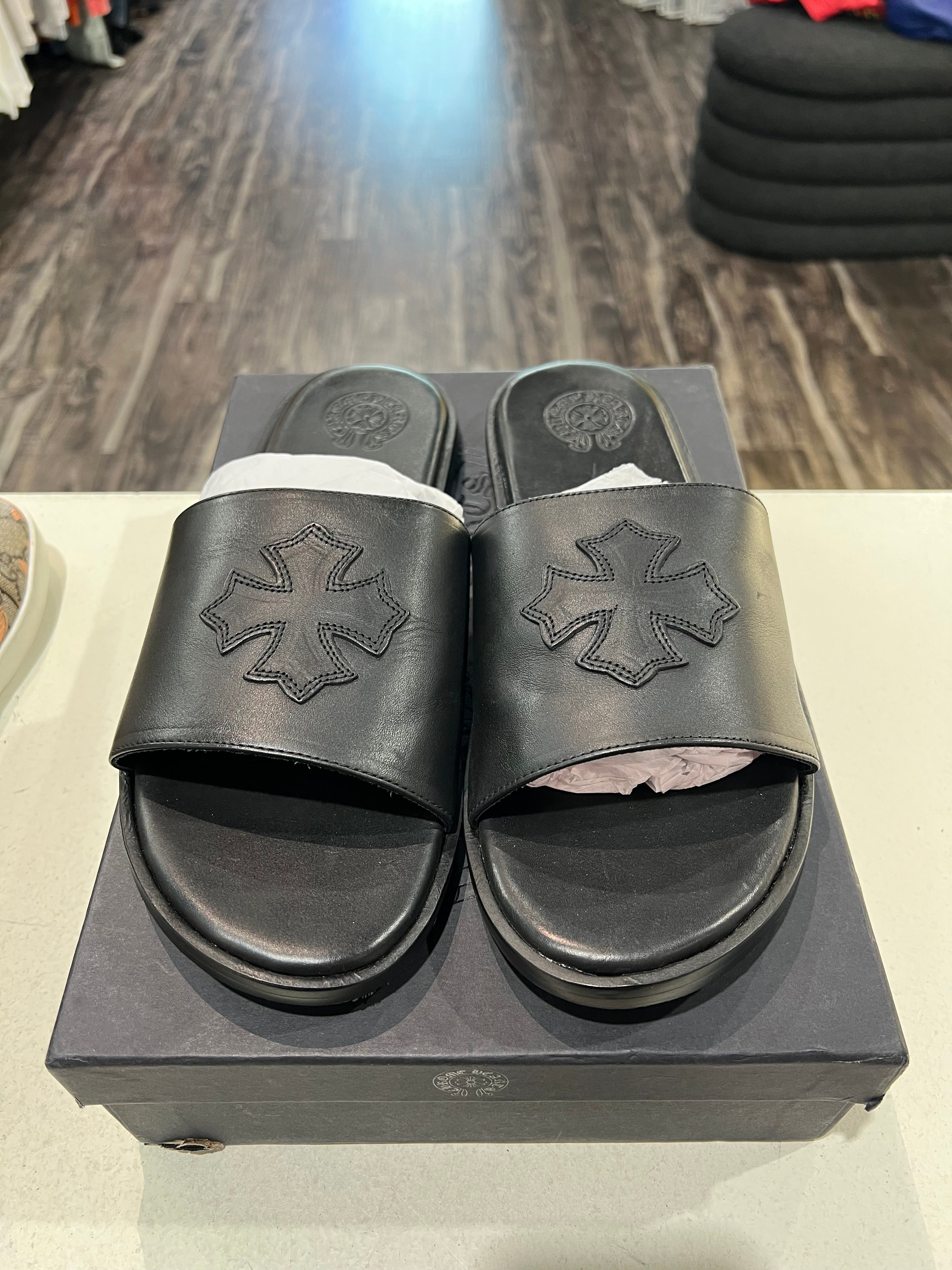 Chrome Hearts Cross Patch Black Sandals PRE-OWNED
