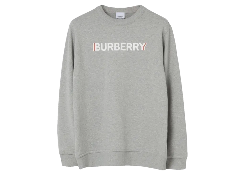 Burberry Logo Print Cotton Sweatshirt Pale Grey Melange